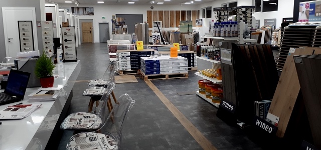 Salon firmy Profit na ul. Europejskiej 128 w Koninie to duża przestrzeń, w której można wybrać najlepsze podłogi drewniane i winylowe, tapety, drzwi, okna oraz bramy.