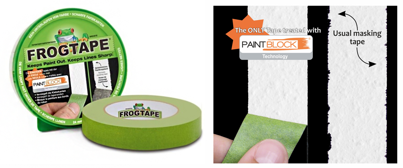 FROGTAPE – the only one masking tape created against paint bleed. Keeps paint out. Keeps lines sharp!